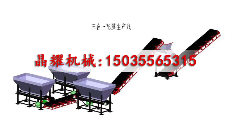 簡單的機械化配煤生產(chǎn)線的工藝流程:用裝載機將不同性質(zhì)的單種原料煤裝入不同的貯煤斗,通過圓盤給料機或箱式給煤機出煤閘門的調(diào)節(jié),控制各單種原料煤出煤量的大小,不同的煤經(jīng)滾筒篩或振動篩等篩分設(shè)備進(jìn)行篩分和混配,篩下物成為動力配煤,篩上物經(jīng)粉碎后摻入動力配煤中,然后作為成品貯存或外運。一般中小型配煤場常用這種簡單的工藝流程。